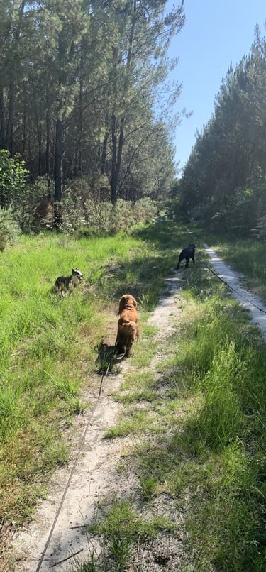 Une journée trop chargée? Une indisponibilité à vous déplacer? Je vous propose de récupérer votre chien au domicile pendant 1h minimum (exception pour chiots et séniors) et de lui offrir une balade éthologique adaptée qui répondra à ses besoins physiologiques, physiques et cognitifs, quel que soit le profil du chien. Sauf cas particuliers, le bilan n'est pas nécessaire pour bénéficier de ce service.